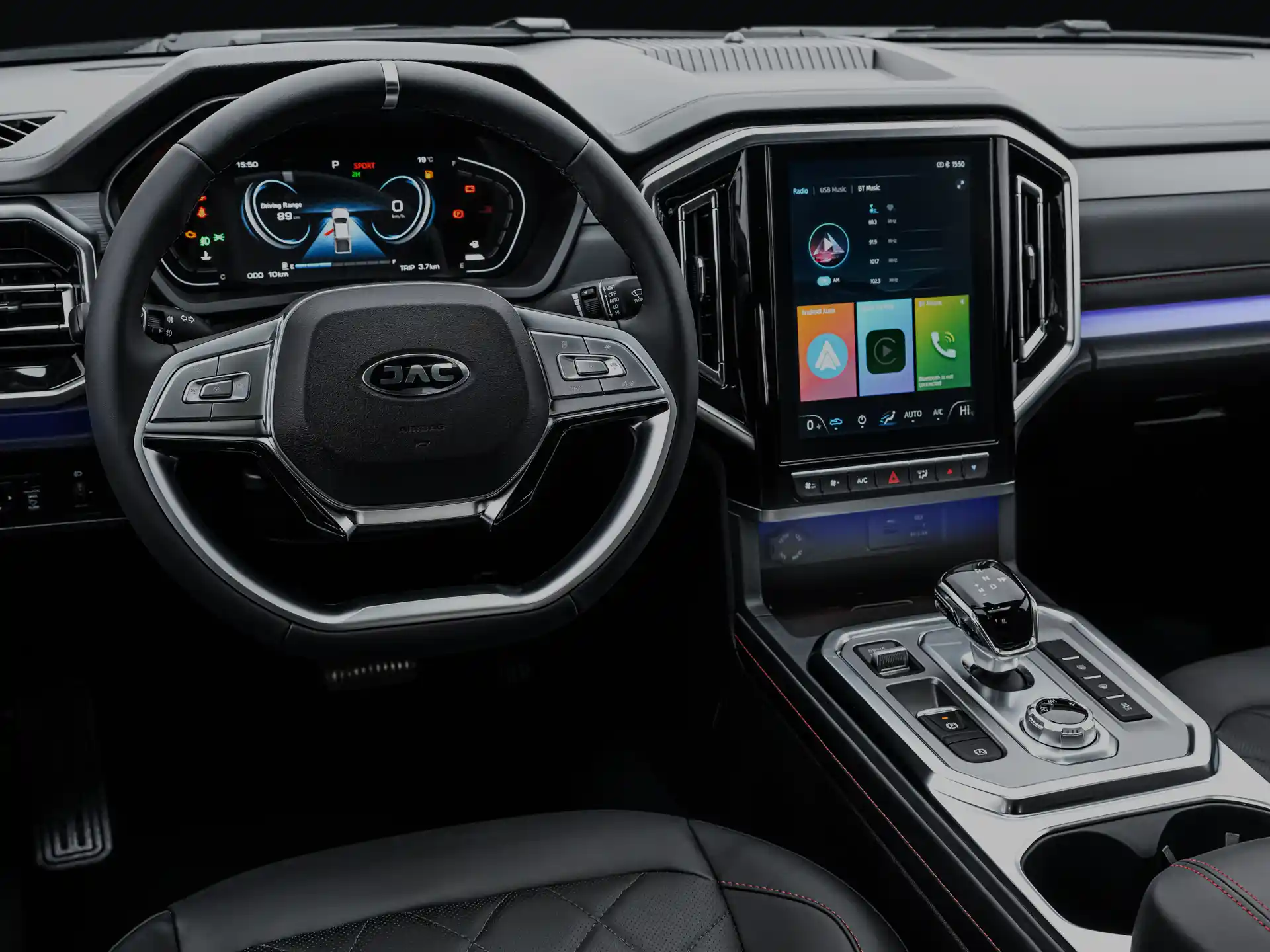 Przestronna kabina została zaprojektowana z myślą o komforcie i ergonomii. Okno dachowe, nastrojowe oświetlenie ambientowe oraz intuicyjny system multimedialny z menu w języku polskim tworzą przyjazną atmosferę podczas każdej podróży. Wnętrze T9 łączy nowoczesny design z funkcjonalnością na co dzień.